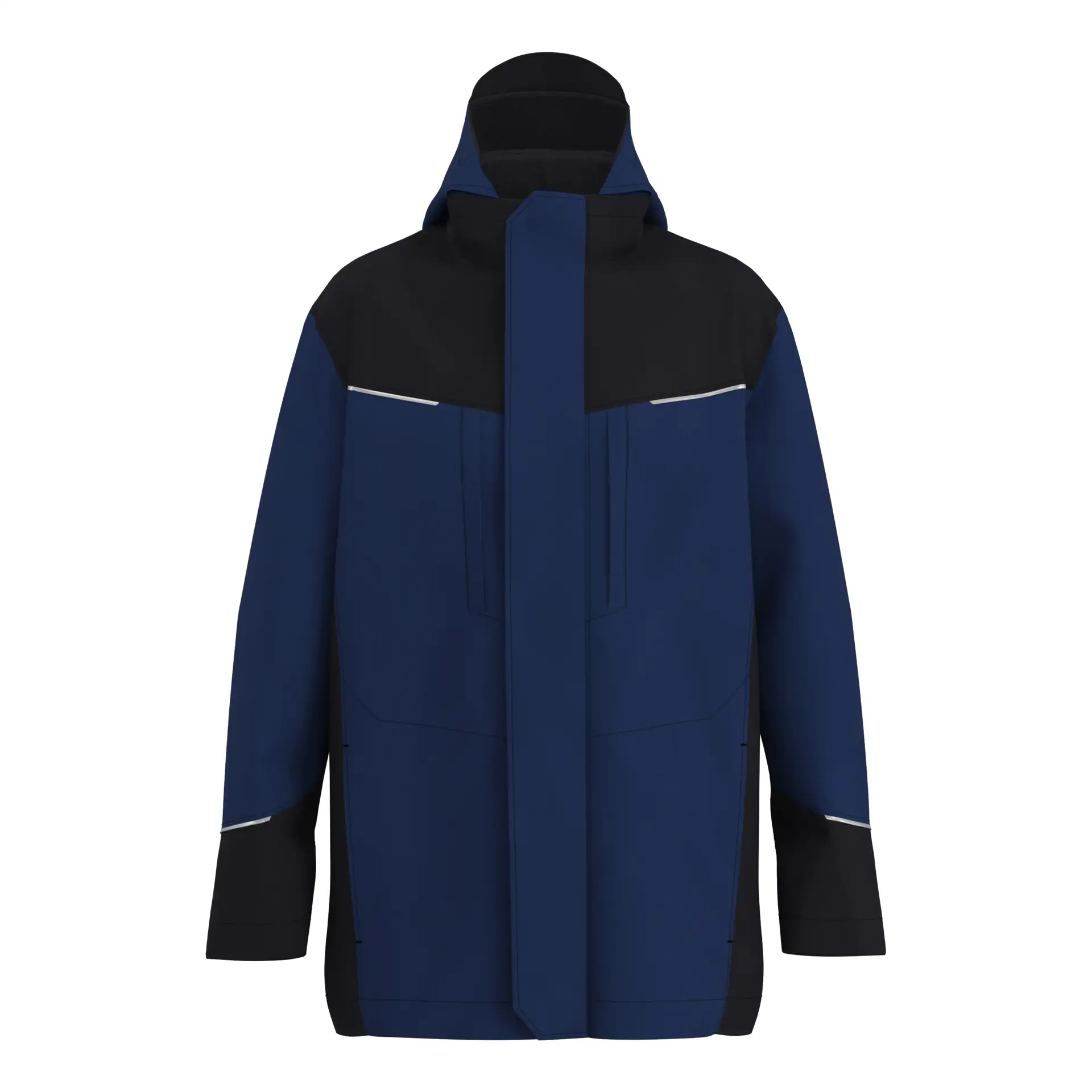 - Stehkragen mit innenliegendem Fleece und gefütterter Kapuze